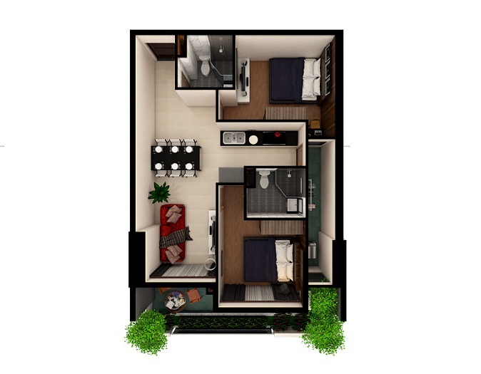 Diện tích: 87 m2 Số phòng ngủ: 2 View: 2 mặt tiền (căn góc biển)